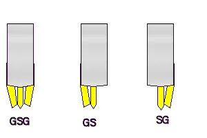 為了探測(cè)電路性能,我們需要把信號(hào)傳導(dǎo)到某類傳輸線上, 這意味著我們需要至少兩個(gè)導(dǎo)體,即“信號(hào)導(dǎo)體”和“地導(dǎo)體”。因此三種探針類型如圖: